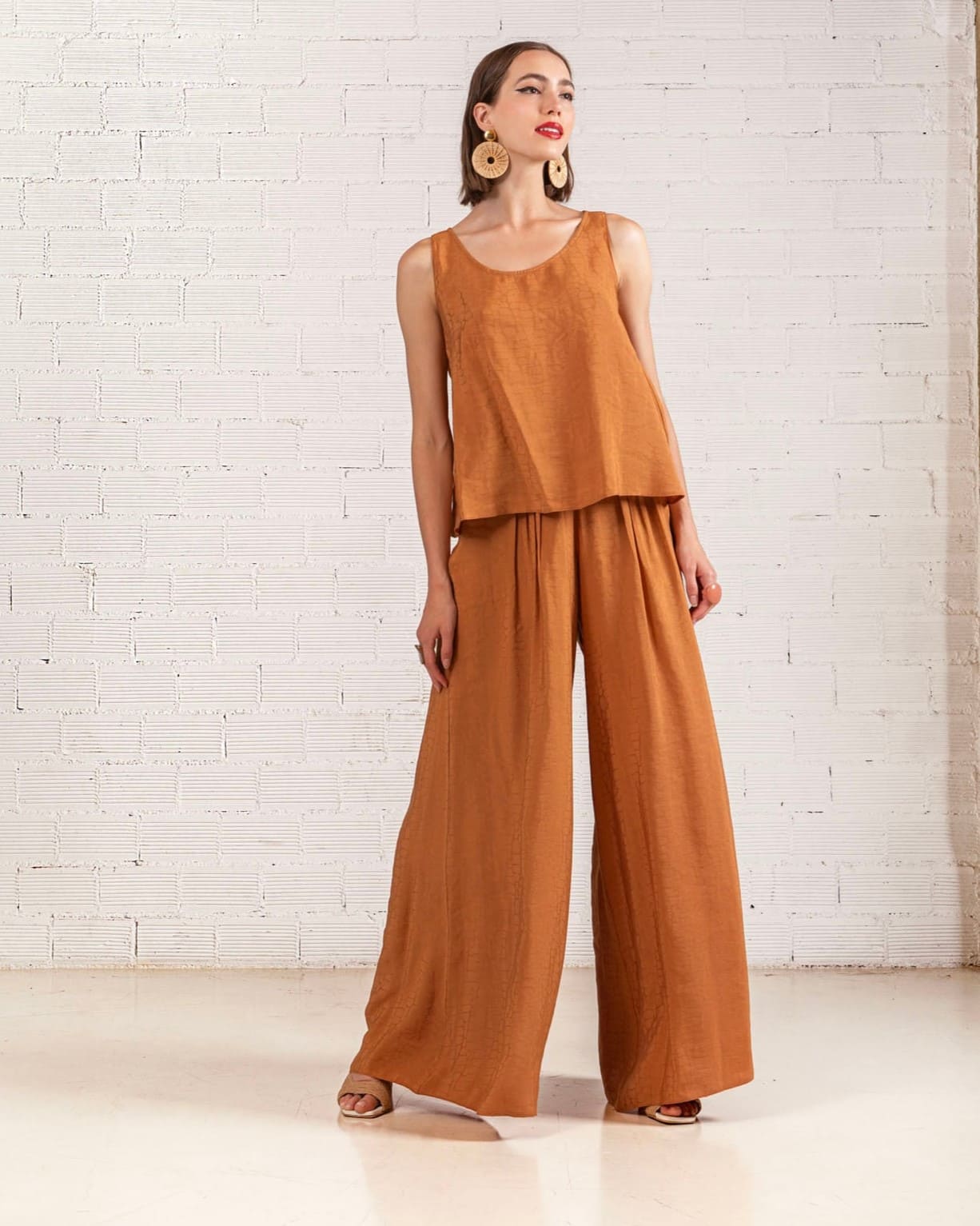 Σύνθεση: 86% MODAL 14%PES Χαρακτηριστικά: ψηλόμεση παντελόνα τσέπες στο πλάι λάστιχο στη μέση wide leg κανονική εφαρμογή
