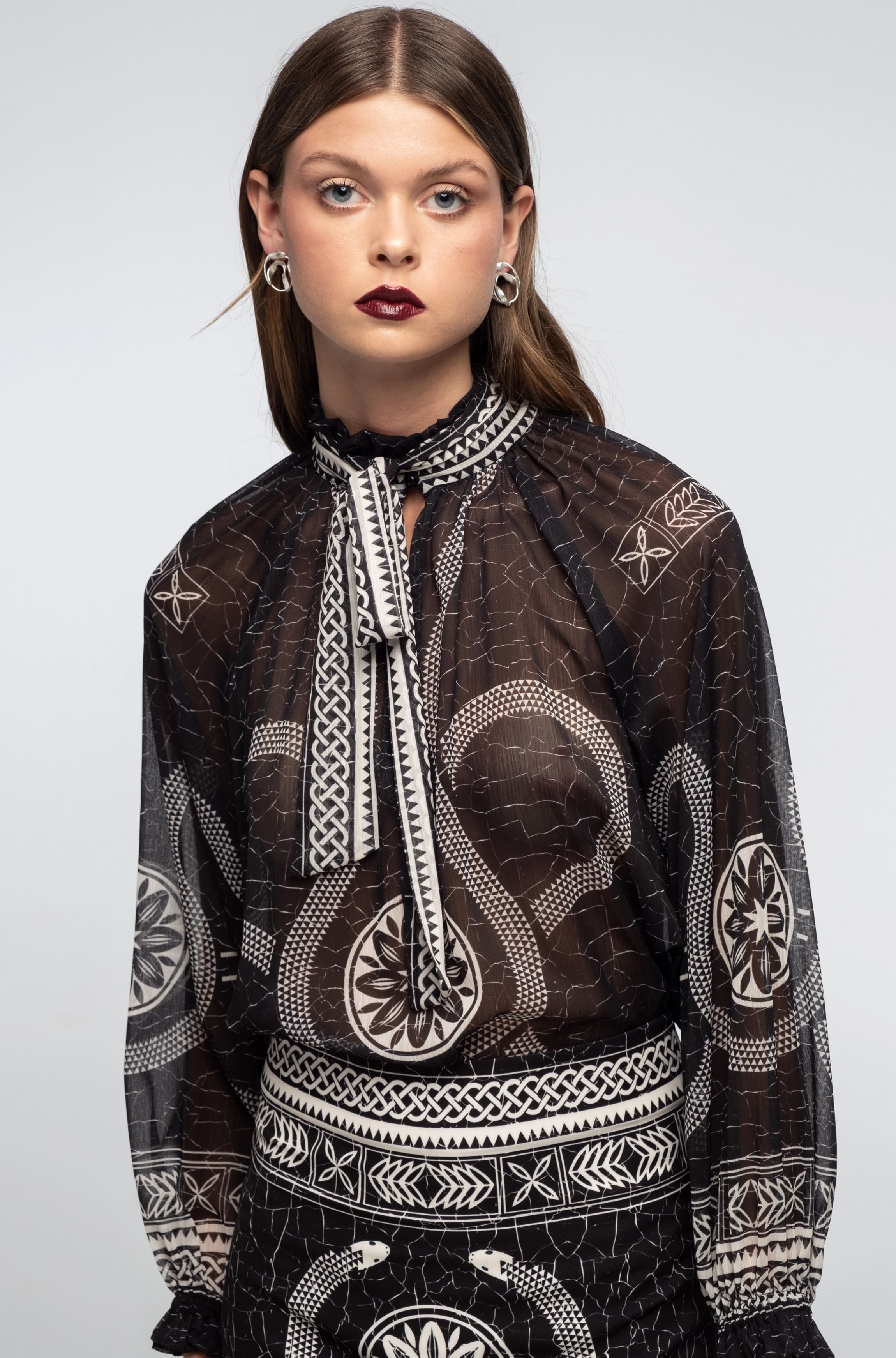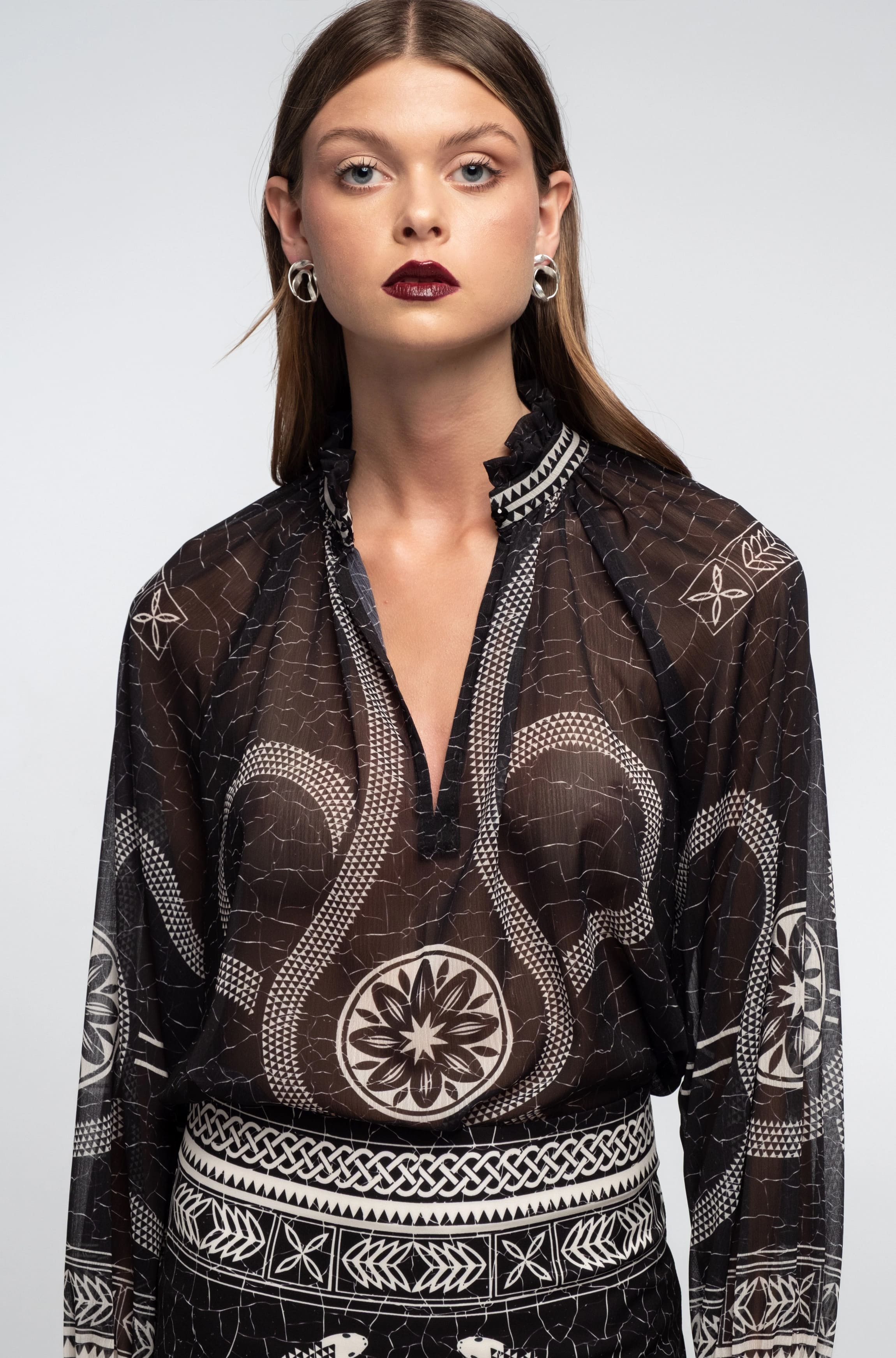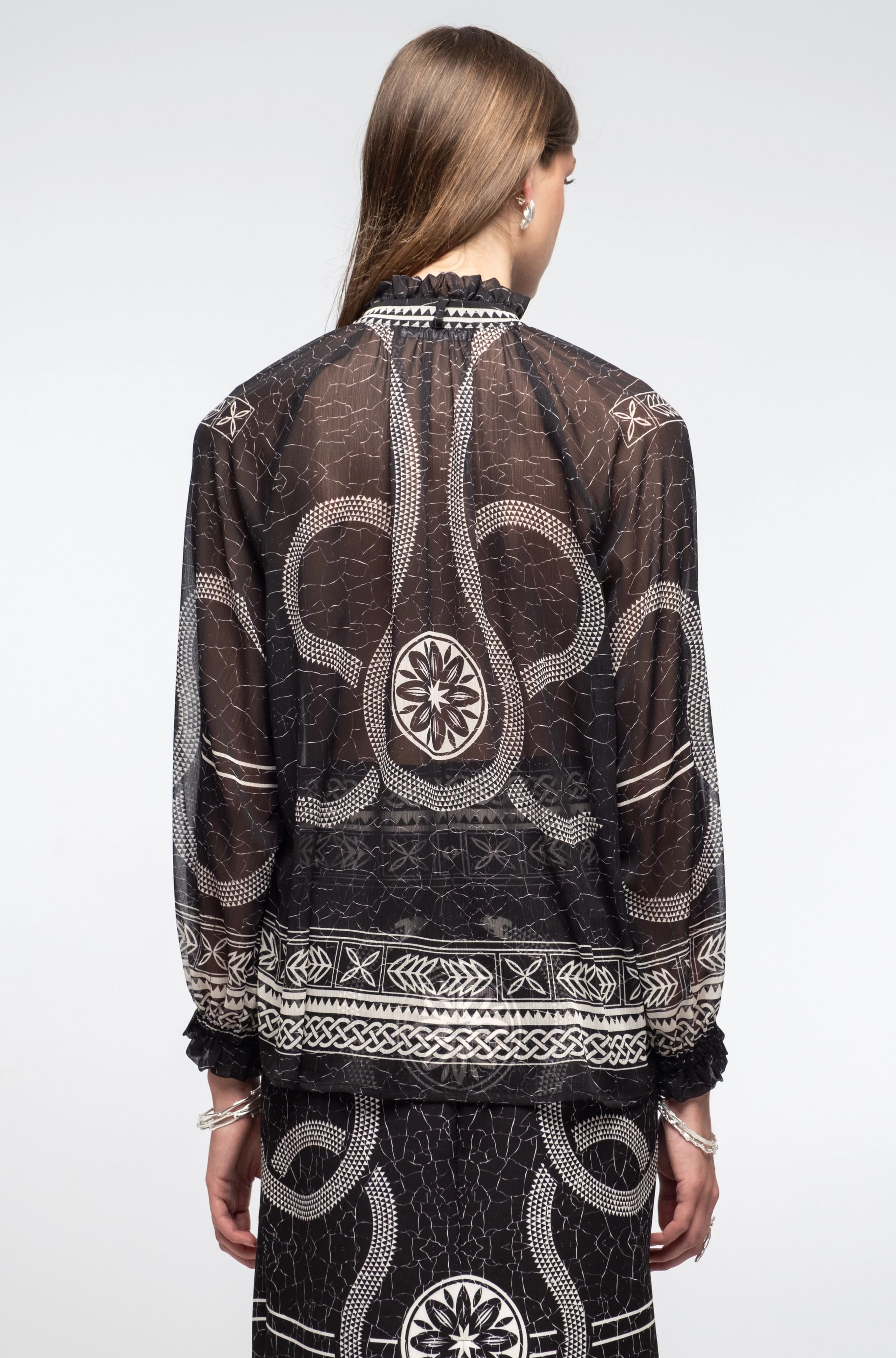 • Διάφανη μπλούζα με βολάν στον γιακά