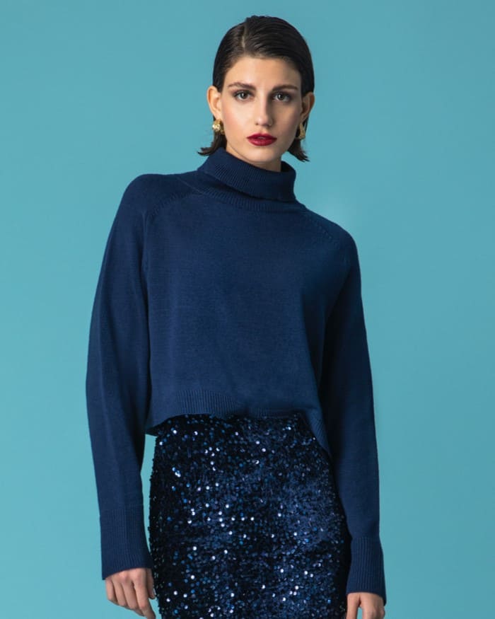 Moutaki "Knitage" Turtleneck Crop Blouse: One size Μπλε