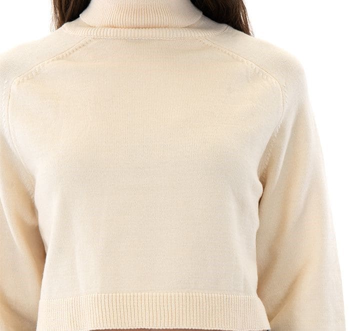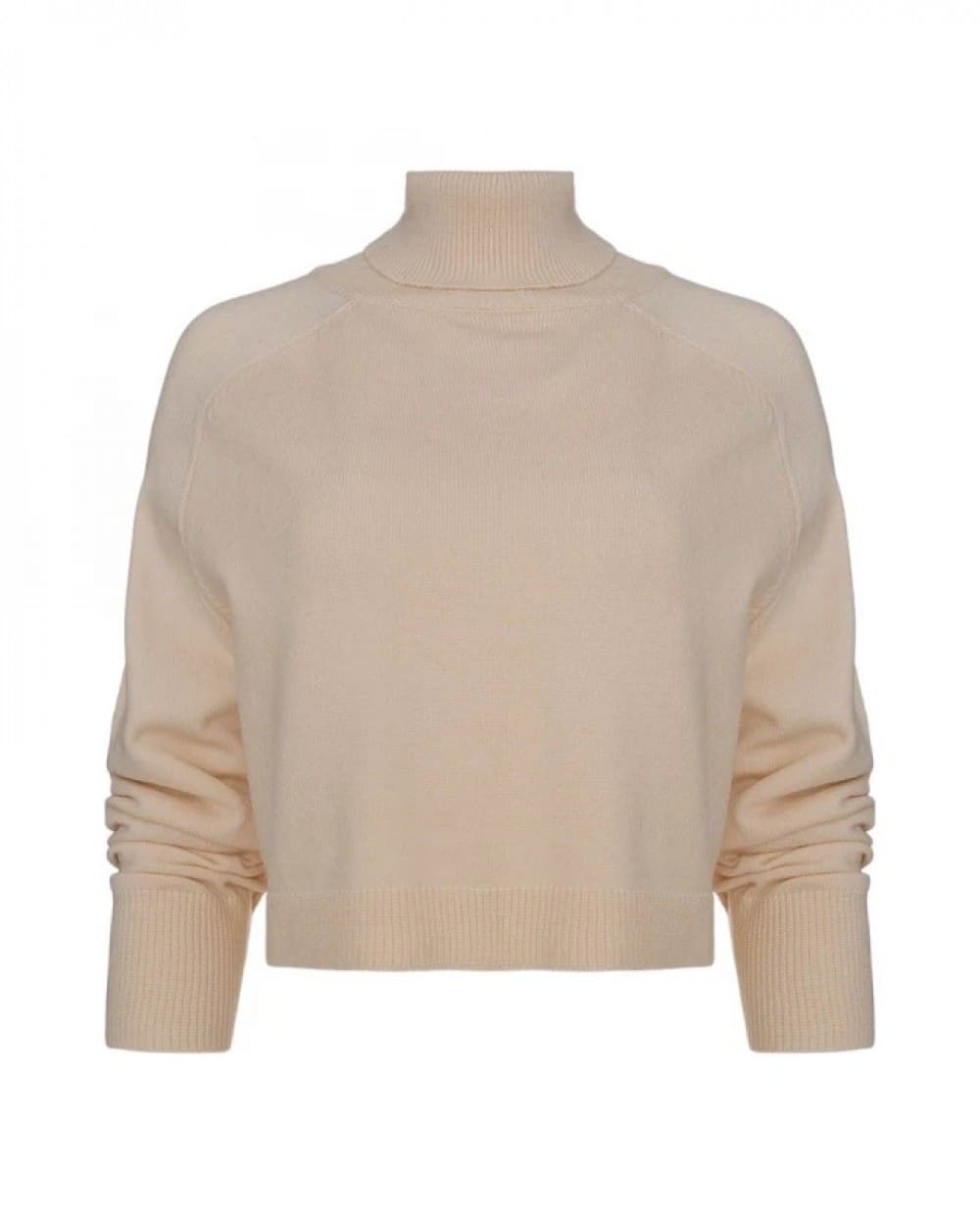 Moutaki "Knitage" Turtleneck Crop Blouse: One size Vanilla