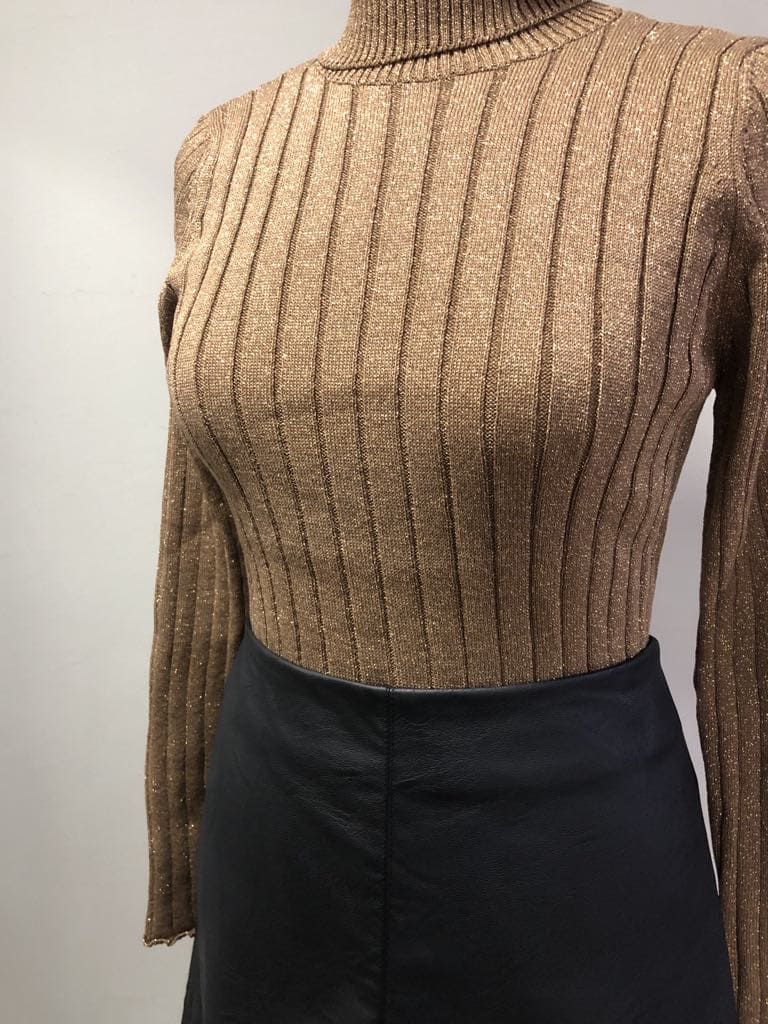 Moutaki Elastic Fine Long Sleeve Knitted Blouse: One size Gold