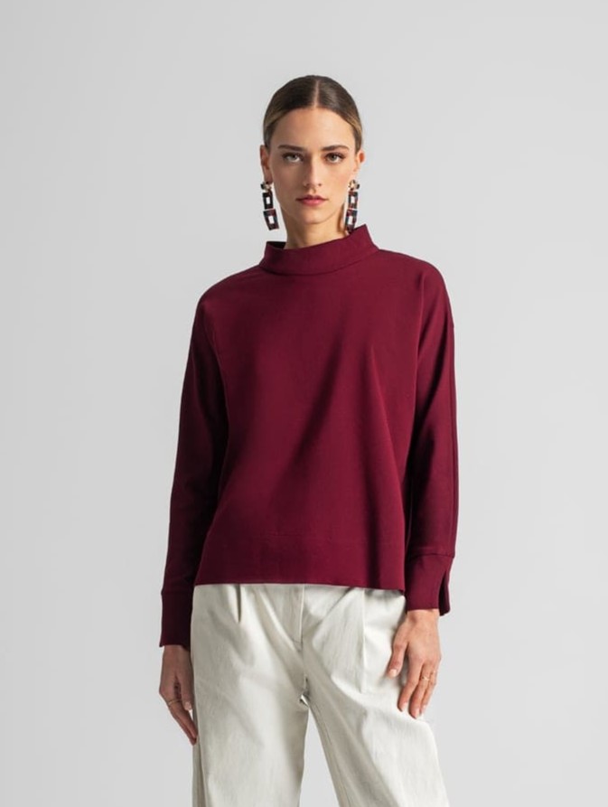Moutaki "Knitage" Turtleneck Shape Blouse: One size Μπορντώ