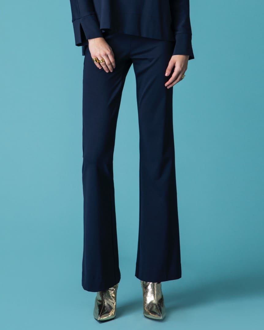 Σύνθεση: 68%RΑΥ 27%PA 5%SP Χαρακτηριστικά: ψηλόμεση παντελόνα ελαστική μέση κλείσιμο με φερμουάρ στο πλάι χρώμα navy blue