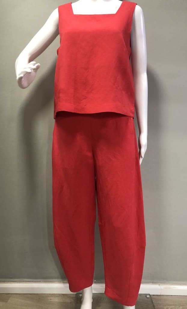 High Waist Linen Pants MOUTAKI: X-large Κόκκινο