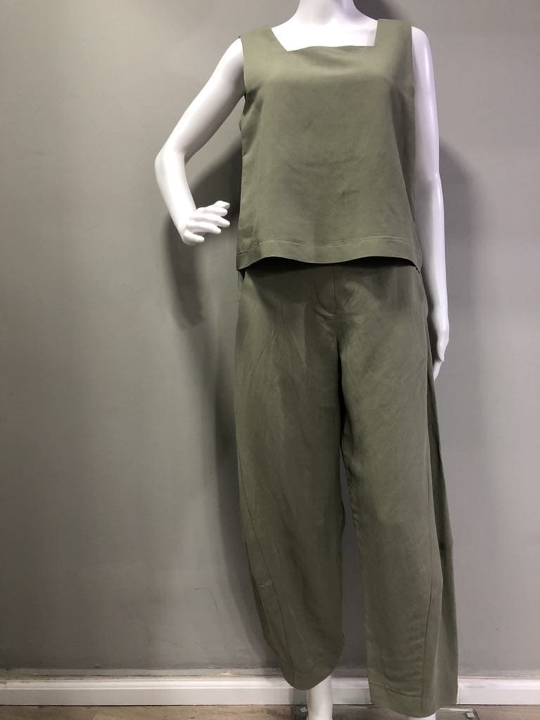 High Waist Linen Pants MOUTAKI: Small Χακί