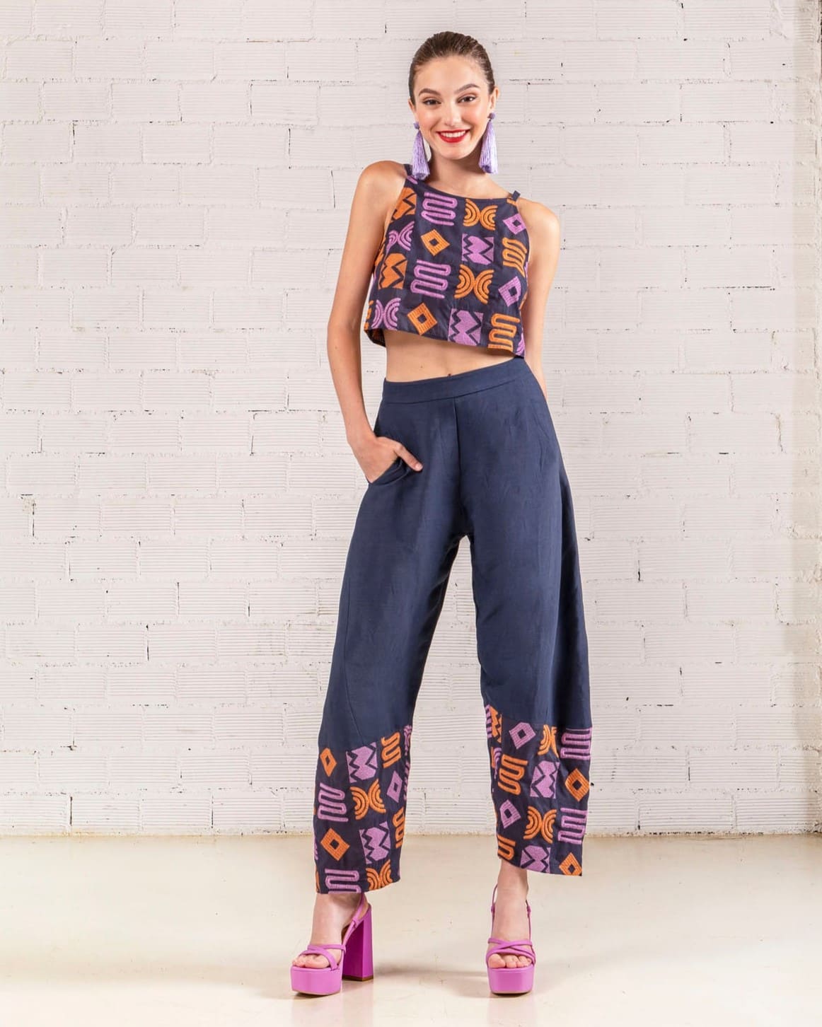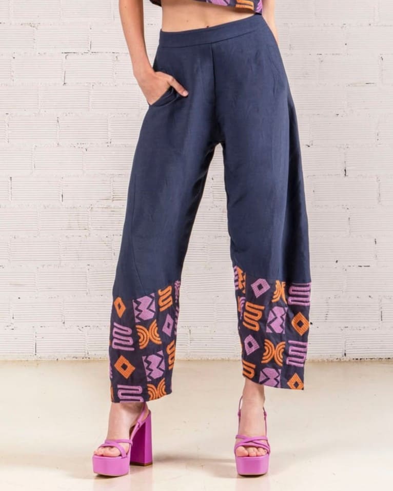 Σύνθεση: 60%RAY 40%LIN (ΚΕΝΤΗΜΑ 100%COT) Χαρακτηριστικά: ψηλόμεση παντελόνα λάστιχο στο πίσω μέρος τσέπες στο πλάι λεπτομέριες με κέντημα wide leg κανονική εφαρμογή ...Read more